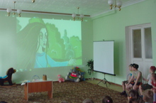 Сегодня в детском саду был показан мультфильм "Водяная" на татарском языке.