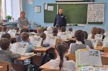 Сотрудники ГИБДД провели лекцию с учащимися начальных классов на тему " Правила безопасного поведения на дорога". Сотрудники напомнили ученикам о важности соблюдения правил дорожного движения. -