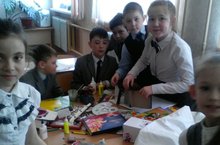 В школе продолжается конкурс памятников Великой Отечественной войны. Школьники начальной школы и среднего звена работают в группах над объемными памятниками, используя самые разнообразные материалы