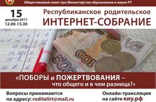 15 декабря 2017 года пройдет Республиканское родительское интернет-собрание. "ПОБОРЫ и ПОЖЕРТВОВАНИЯ-что общего и в чем разница?"