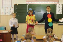 Сегодня, 22 сентября, учащиеся в образе сказочных героев провели викторину по ПДД "Внимание, дети!" для 1 классов.