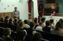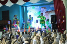 Сегодня к нам в школу приехали необычные артисты - Ириска и Веснушка, а вместе с ними светофор и веселый клоун. Они показали учащимся начальной школы представление по ПДД. Ребята пели, танцевали и отвечали на вопросы!!! Веселое шоу очень понравилось и учащимся и учителям! Благодарим вас за увлекательное шоу! Ждем снова к нам в гости!!!