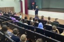 Учащиеся начальной школы посетили кинотеатр ДК Ленина. Ребята посмотрим мультфильм «Финник»