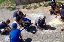 Ко дню России ребята рисовали рисунки мелками на асфальте