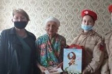 Юнармейцев школы под руководством педагога поздравили вдов ветеранов ВОВ с Днем Победы и вручили открытки от Президента РТ И Мэра города и продуктовый набор