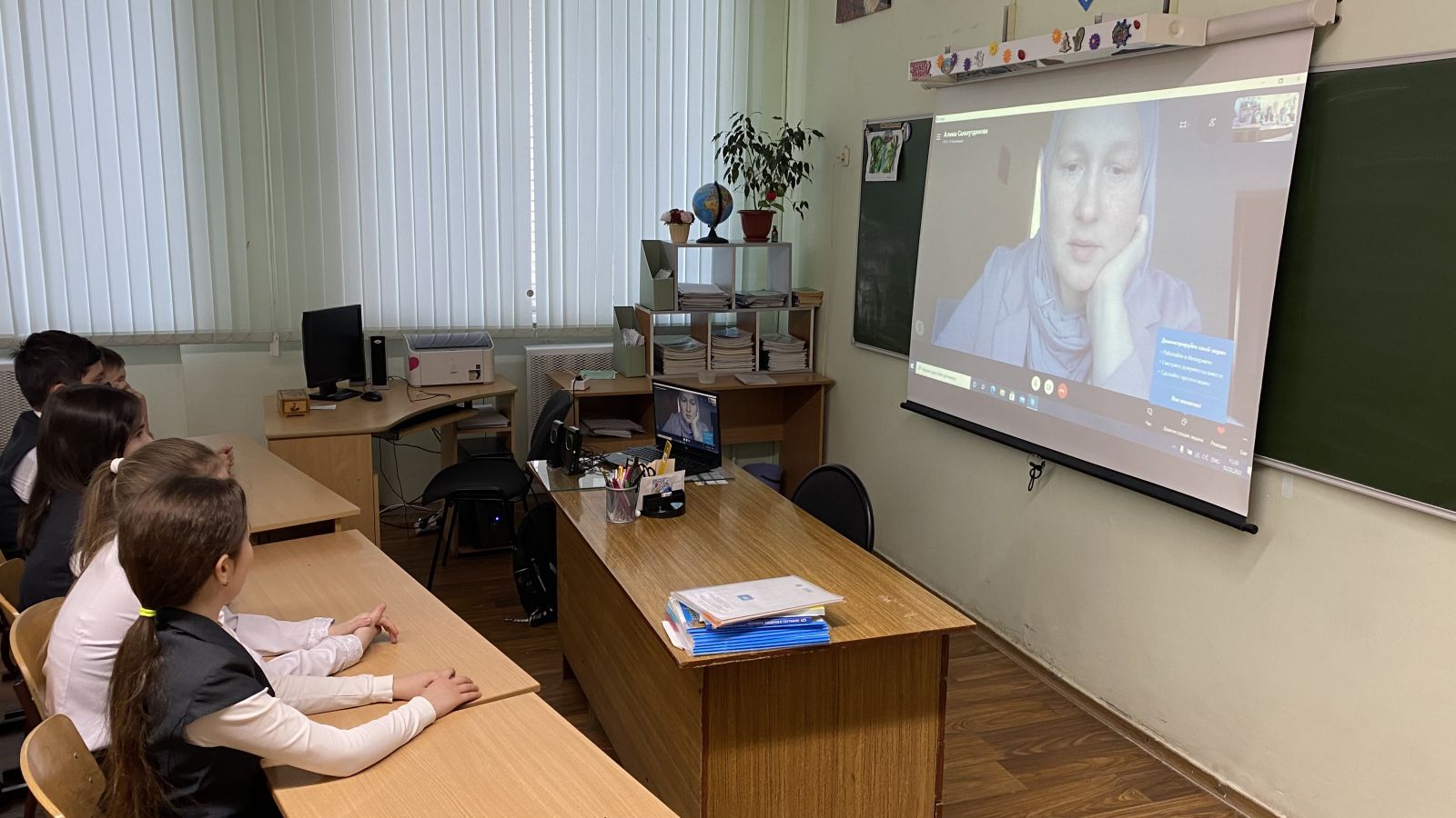“Әй, татар, сибелгән ...” . 5В сыйныф укучылары Канаданың Монреаль шәһәрендә яшәүче Әлимә Сәләхетдинова белән интернет аша очрашу үткәрделәр. Анда яшәүче татарларның тормышы, көнкүреше турында әңгәмә оештырылды. Чит илләрдә яшәүче милләттәшләребезнең телне саклауга зур игътибар бирүләре укучыларда соклану хислщре уятты.
