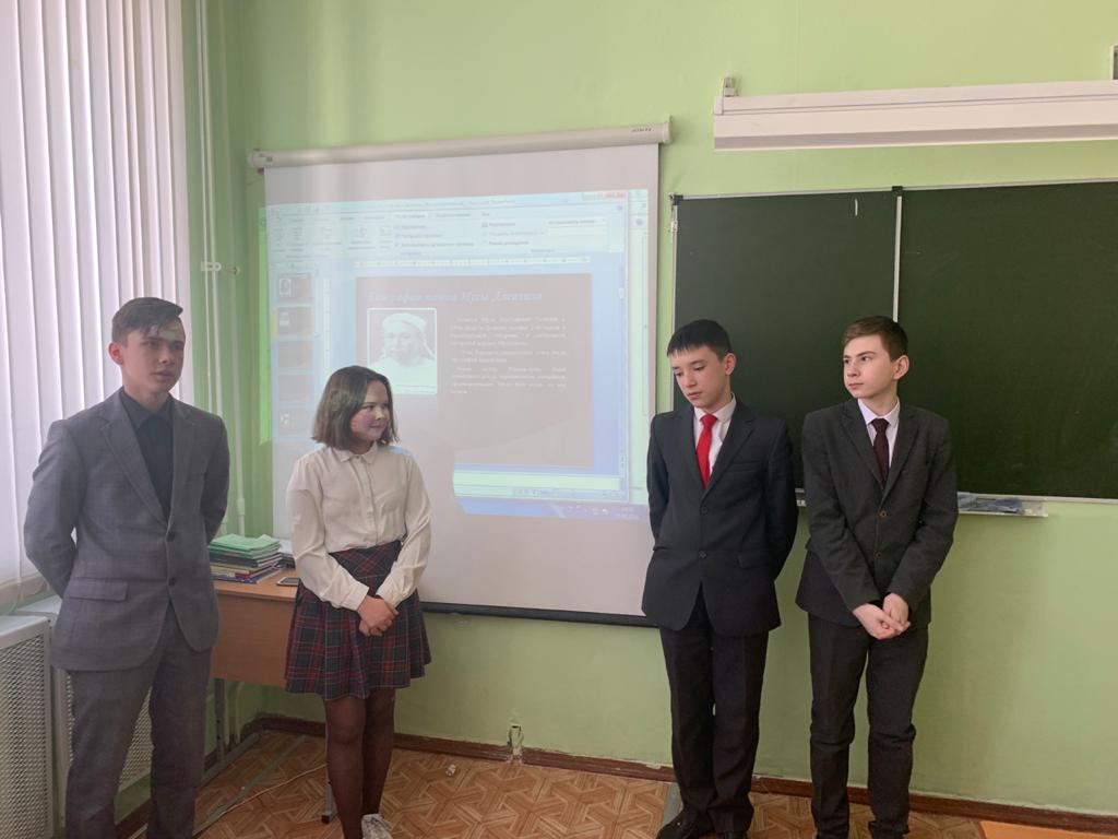 В 6-х классах прошла интересная встреча с сыном Фарита Султанмекова (Джалильца) , с Фоатом Фаритовичем посвящённая 115 летию М. Джалиля