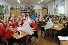 В библиотеке состоялась викторина "Лягушка-путешественница" среди учеников 3Б класса, по произведению В.М.Гаршина. Ученики играли в командах и выполняли различные задания.