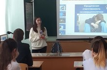 Студенткой юридического факультета для учащихся 9 и 10 классов была прочитана лекция "Юридическая ответственность несовершеннолетних" в рамках проекта "Школа права" ассоциации юристов России.