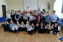 Для учащихся начальной школы 26 декабря прошла новогодгяя ёлка. В гости к ребятам приехали Дед Мороз и Снегурочка и их друзья.