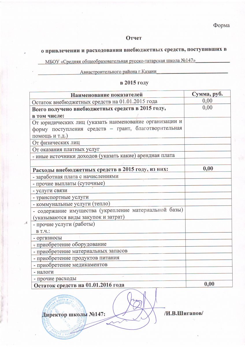 Отчет о привлечении и расходовании внебюджетных средств поступивших в ОУ