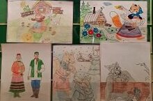 Выставка рисунков учащихся "Народные сказки"Укучыларның "халык әкиятләре"рәсемнәр күргәзмәсе 01.03.2023