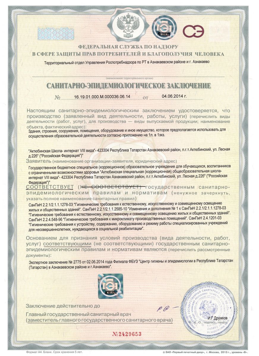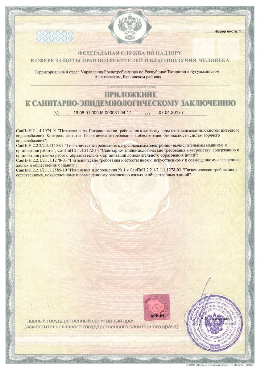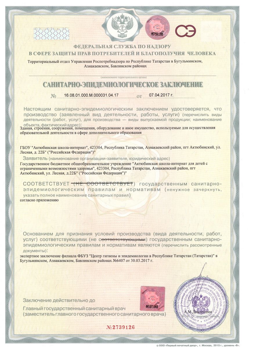 Санитарно-эпидимиологическое заключение.приложение 2.