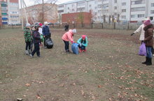 Сегодня учащиеся школы приняли участие в субботнике. Ребята дружно убирали территорию около школы.