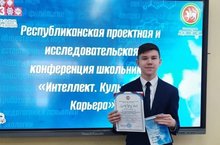 Ученик 10 класса Мухмадеев Данил занял 2 место в Республиканской проектной и исследовательской конференции школьников «Интеллект. Культура. Карьера.» Поздравляем Данила и наставника Хакимову Лилию Билаловну