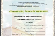 7 нче б сыйныфы укучысы Гараева Рамина Кукмара муниципаль районы Олыяз урта мәктәбендә үткәрелгән «Хикмәтле дә, бизәкле дә туган тел» I Республикакүләм фәнни-гамәли конференциясендә катнашып Лауреат исеменә лаек булды. Мин укучым белән горурланам.