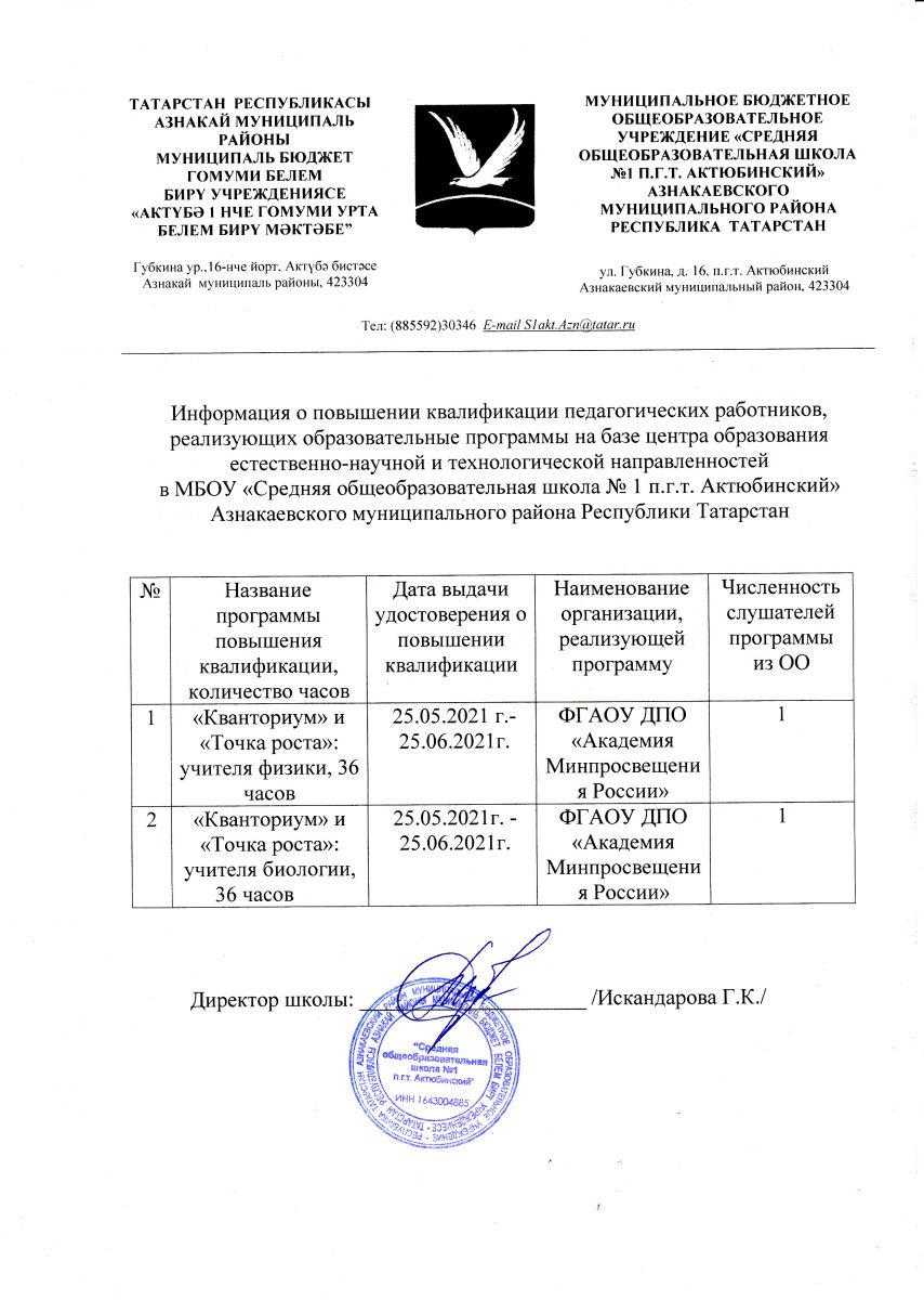 МБОУ «Средняя общеобразовательная школа №1 пгт. Актюбинский» Азнакаевского муниципального района РТ Муниципаль бюджет гомуми белем бирү учреждениесе Татарстан Республикасы Азнакай муниципаль районы Актүбә ш.т.п. 1 нче урта гомуми белем бирү мәктәбе