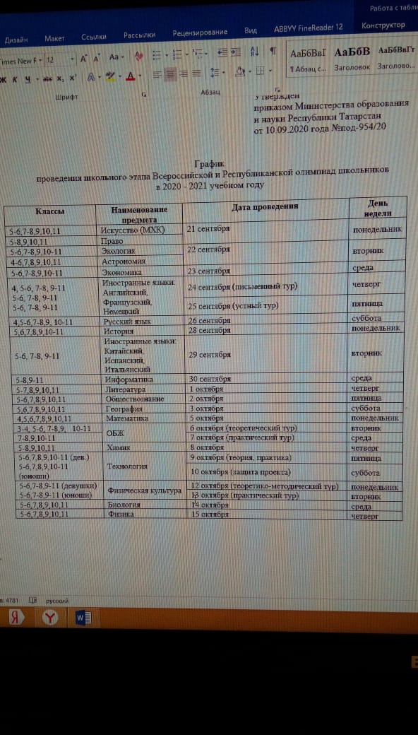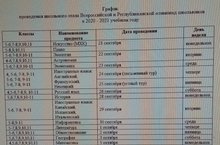 График проведения школьного этапа Всероссийской и Республиканской олимпиад школьников 20.09.2020