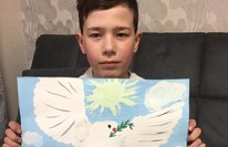 Муртазин Эмиль, ученик 7Б класса, участник акции рисунков "Мирное небо".