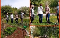 Работа родителей 8 а класса на пришкольном участке.
