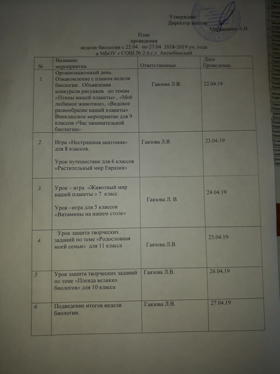 Неделя биологии./Биология атналыгы. 22.04.2019