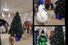 Зимний лагерь в ДК им.Ю.Гагарина на представлении "В гостях у Деда Мороза"./Мәктәп яны лагере. "Кыш бабайда кунакта" тамашасы.