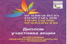 Музею нашей школы вручили Диплом акции «Музейная весна Татарстана-2016».