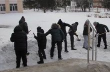 После уроков «Трудовой десант школы» расчистил все дорожки , у школы, за территорией школы, и помогли престарелым жителям посёлка. -