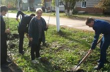 Ученики 9 классов посадили 20 деревьев по улице Комарова нашего посёлка.