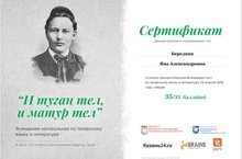 Каждый народ в ту или иную эпоху рождает своего Поэта, миссия которого - стать олицетворением его гения, души. Для татарского народа таким поэтом стал Тукай, поэзия которого зазвучала в унисон со струнами народной души. 2016 год – год 130-летия со дня рождения великого поэта. В ознаменовании этого события 23 апреля проводилась Всемирная контрольная работа по татарскому языку и литературе «И туган тел, и матур тел».Все учителя татарского языка и литературы и учащиеся нашей школы успешно прошли тест и получили подтверждающий документ (сертификат).