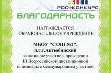 Наша школа очередной раз получает благодарность за активное участие в проведении Всероссийской дистанционной олимпиады с международным участием. Молодцы ребята и результаты достойные!