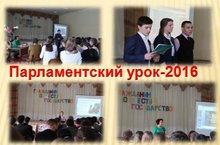 Сегодня был проведён Парламентский урок на тему: «Гражданин. Общество. Государство». В его рамках учащиеся 8-10 классов выступили с защитой проектов на тему: «Я- гражданин». Учитель Оджимамадова А.Д. показала фильм о работе главы посёлка Галеевой Р.А., которая была приглашена на мероприятие в качестве почётного гостя. Роза Алмасовна показала о взаимосвязи государства и общества на личном примере, а так же ответила на вопросы учащихся.