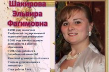 8, 9 февраля 2016 года на базе МБОУ «Средняя общеобразовательная школа №5 с углубленным изучением английского языка г. Азнакаево» прошел муниципальный этап конкурса "Классный руководитель года". В конкурсе участвовало 22 учителя из Азнакаевского муниципального района, среди которых была учительница русского языка и литературы, классный руководитель 6Б класса МБОУ "СОШ №2 п.г.т.Актюбинский" Шакирова Эльвира Фагимовна. Она достойно выступила на визитке, провела живой классный час в 6А классе принимающей школы на тему "Красота общения (жесты)" и прекрасно защитила исследовательский проект "Чистая вода", выполненный учащимися 6Б класса совместно с 11-классниками. Надеемся, что Эльвира Фагимовна займет одно из призовых мест или получит достойную номинацию. А пока с нетерпением ждем результатов.