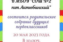 20 мая в 10:00 состоится родительское собрание для будущих первоклассников.