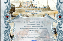 Поздравляем ученицу 2Б класса Салимову Диану! Диана стала победителем II степени в мероприятии Всероссийский конкурс сочинений «Мой кумир».