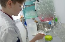 В биолаборатории кипит работа.Ученик 7 класса Даминов Ростислав осваивает навыки приготовления питательной среды,пересадки клонированных растений в почву.
