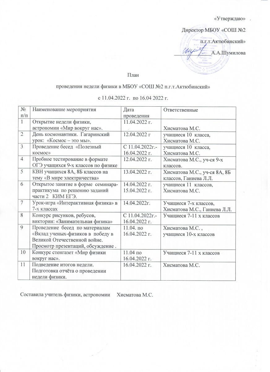 Неделя физики./Физики атналыгы. 11.04.2022
