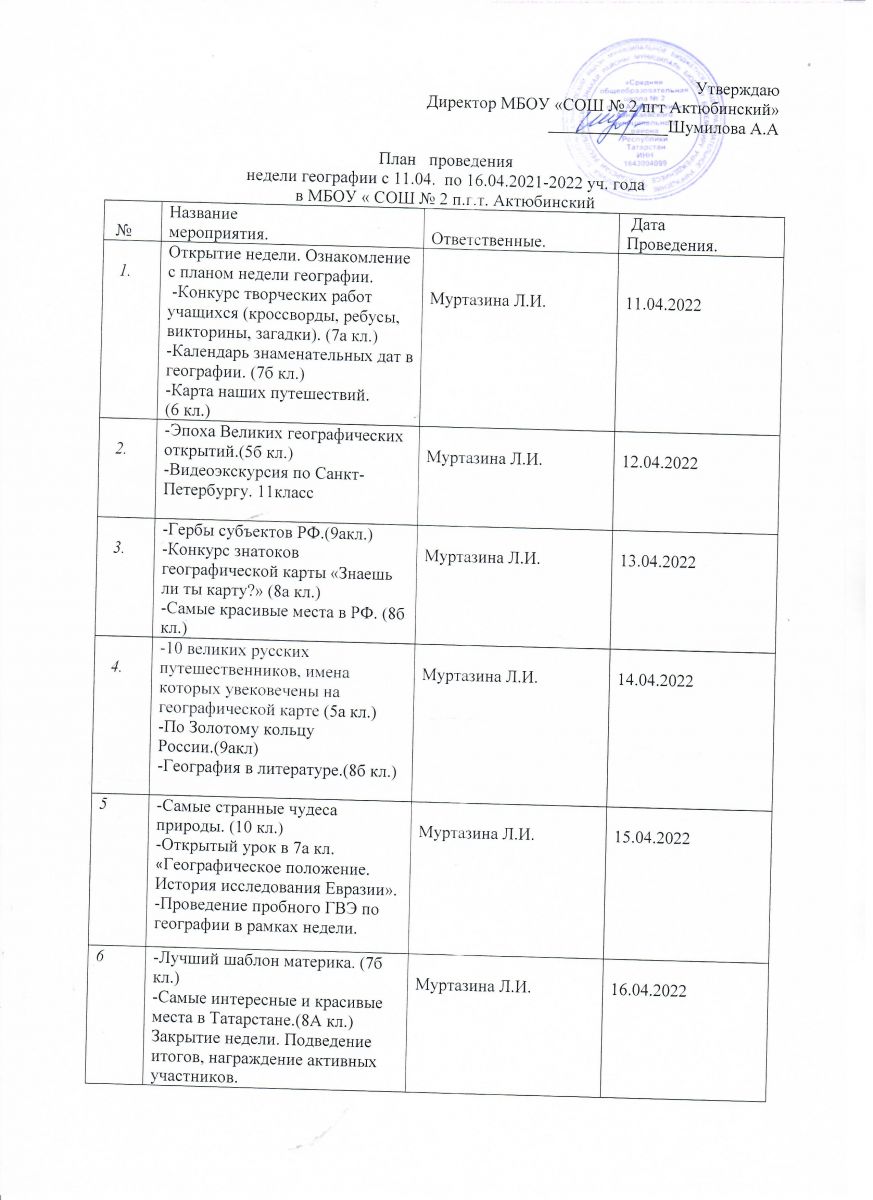 С 11 по 16 апреля в нашей школе проходит неделя географии.План недели