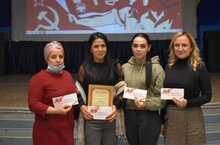 28 октября в молодежном центре прошло районно-городское мероприятие – квиз-игра «Эпоха комсомола». В данном мероприятии приняли участие зам.директора по АХЧ Шарафеева Э.А. и учитель начальных классов Миннахмедова Э.Р. Участники вспомнили «Историю комсомола», участвовали в соревнованиях под названием «Битва Умов», «Угадай мелодию», «Разгадай кроссворд». Команды попробовали реализовать себя в проекте совместной деятельности молодежи прошлых лет и современной молодёжи: «Мы нужны друг другу». Призеры в номинациях были награждены дипломами и сертификатами.