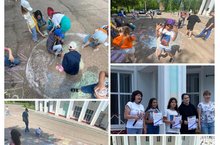 Безнең җәйге сәламәтләндерү лагере иртәсе конкурста катнашудан башланды. Асфальтта рәсем ясау конкурсы "Россия көненә" багышланды.