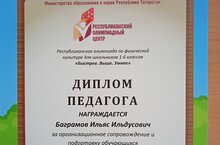 Республиканская олимпиада по физической культуре для школьников 1-6 "Быстрее.Выше.Умнее". Победитель: Камаев Раиль 6 класс.Призеры: Баграмова Амина 4 класс, Миннегалиев Нафис 4 класс, Муллина Аиша 3 класс.Участник: Тиллабаев Ансар 6 класс.Поздравляем!