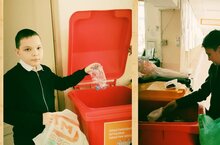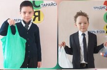 Ученики 1 класса на страже окружающей среды. Айнур и Карим принимают активное участие в акции по сбору пластиковых бутылок.
