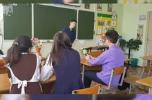 Педагог Фера Мингазизовна Мальцева һәм 9 нчы сыйныф укучылары иртәндән белемнәрен тәртипкә китерәләр. Эсселек комачауламый. Мәктәп бакчасы күләгәсендә белем тагын да яхшырак үзләштерелә.