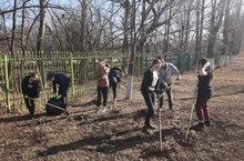 Сегодня учащиеся школы очищали школьную территорию от мусора.