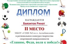 2 нче сыйныф укучылары сыйныф җитәкчесе Җиһаншина Г.А. белән Әлмәт шәһәрендә "Иң мөһиме,Федя,җиңүгә ихтыяр" дигән спорт юнәлешендәге региональ иҗат конкурсында катнаштылар һәм җиңүчеләр булдылар.Котлыйбыз!