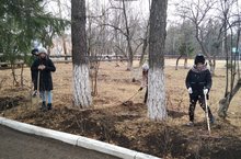 Мәктәп яны лагерында укучылар файдалы эшләр белән шөгыльләнәләр, алар мәктәп участогын ылыс катламыннан чистарттылар.