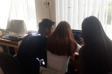 Учащиеся среднего звена готовят рисунки и плакаты на осенний праздник.