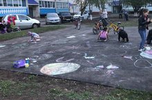 Сегодня коллектив нашей школы и учащиеся присутствовали на празднике двора, где учителя проводили игры. Особенно детям понравились рисунки на асфальте.