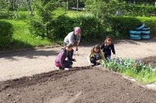 Учащиеся сажают рассаду и семена цветов на пришкольном участке. Надеемся, что летом наша школа будет утопать в цветах.