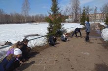 В рамках недели искусства учащиеся 5-8 классов рисовали на асфальте.